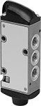 These valves create one action, such as extending a cylinder. Also known as 3/2 or pilot valves, they use an air signal to actuate, so they're good for environments where electrical use may be dangerous. They direct airflow from an inlet to your equipment and exhaust return airflow to create motion. In the off position, they exhaust air pressure from the system, allowing equipment to reset so the action can be repeated.