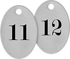 These tags have a large hole for easy hanging. Also known as miners' checks.