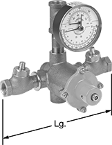 Often used with large water heaters and other applications with flow rates greater than 25 gpm, these valves blend hot and cold water to automatically maintain a set outlet temperature. Adjust the outlet temperature within the range. Valves have internal check valves with strainers to prevent backflow and trap debris. Body is bronze for durability and a long service life.