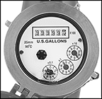 Use these totalizers to measure the total amount of high-temperature liquid flowing through your pipe system. They total the volume by counting how many times their turbine turns as liquid flows through. To avoid clogging the turbine and other damage to these totalizers, use them only with clean, low-viscosity liquids. Their total cannot be reset. They measure correctly no matter the mounting orientation.
