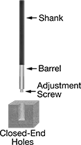 Laps for closed-end holes have a recessed adjustment screw so the barrel can reach the bottom of the hole.