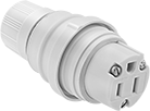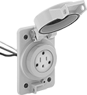 Sockets and receptacles have an attached cover that creates a watertight seal when not in use.