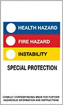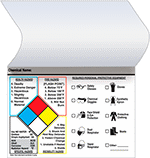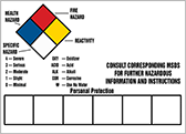 The color stripes and reference chart identify the type of hazard. Write in the appropriate code numbers in the stripes and list required personal protective equipment using a permanent marker.