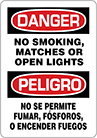 Danger—No Smoking, Matches or Open Lights/Peligro—No Se Permite Fumar, Fosforos, O Encender Fuegos (English/Spanish) | |||||||||