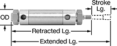 Stroke | Retracted | Extended | Force @ 100 psi, lbs. | Body Material | Pipe Size | Thread Size | Thread Type | Gender | Each | |