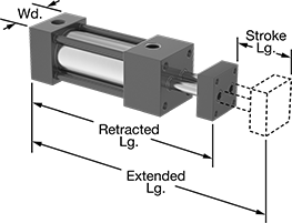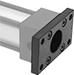 These cylinders have two parallel piston rods that prevent the head from twisting as they extend and retract. They pack force into a smaller footprint than our other tie rod cylinders. Cylinders have holes for mounting; the back end must be mounted against a solid surface.