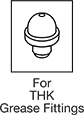 Grease gun with 2.82-fl. oz. capacity comes with two nozzles and three dispensing tips. Type H nozzle fits directly onto THK grease fittings A-M6F, B-M6F, C-M6F, A-PT1/8, B-PT1/8, and C-PT1/8. Type U nozzle is threaded for use with a dispensing tip. Type L dispensing tip fits THK grease fitting PB107. Type N dispensing tip fits THK grease fitting PB1021B. Type P dispensing tip applies grease precisely to bare lubrication points.
