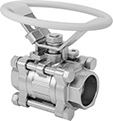 Clean and maintain these valves without removing welded connections. To create a permanent, leak-tight connection, insert unthreaded pipe into the socket and weld. These valves have a three-piece bolted body that disassembles inline, which makes it easy to access internal components. They also have lockable handles that can be fixed in place with a padlock (not included). All are full port, so they do not restrict flow.