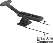 Push the lever to lock the handle and prevent accidental opening. Fit the draw arm over a latch plate and pull the handle to clamp. These clamps have an adjustable draw arm that allows you to change the length.