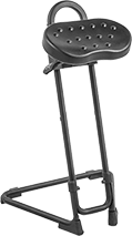 Suitable for most environments, these adjustable-height stools relieve foot and leg strain when working in a standing position by allowing you to rest most of your weight on the seat as you work. Adjust the height using the lever. These stools can be adjusted to heights that are comfortable for working at workstations and high counters. They also tilt to promote good circulation in your legs.