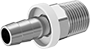 These fittings have sharp barbs to grip rubber push-on hose with no clamps or ferrules required. The more you pull on the fittings, the tighter the hose will grip. Use them in low-pressure hydraulic applications up to 350 psi. Also known as hose nipples, they adapt a barbed end to a threaded end, so you can connect to pumps, cylinders, and other equipment in your hydraulic system. Fittings are zinc-plated steel, which has excellent strength and durability. Fittings have fair corrosion resistance.