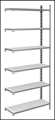 Don't fumble with nuts, bolts, or shelf clips—shelves have rivets that tap into keyhole slots on the posts with a rubber mallet.