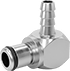 Sockets with a barbed end insert into plastic or rubber hose and secure with a clamp.