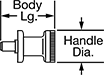 Body Lg. | Wd. | Ht. | Extended Lg. | Dia. | Handle Dia. | Extended | Compressed | Dia. | Ctr.-to-Ctr. Wd. | Each | |