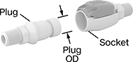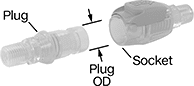 Note: For a complete coupling, order a plug and a socket with the same coupling size.