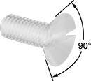 Polycarbonate screws resist breaking in high-impact applications better than other plastic screws. All are chemical and oil resistant, nonconductive, and lightweight. They’re angled under the head to sit flush within countersunk holes. Length is measured from the top of the head.