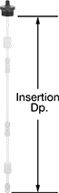 Min. Specific Gravity | Max. Pressure | Temp. Range, °F | Insertion Dp. | Switch Starting Position | Industry Designation | Current | Float Ht. | Overall Dia. | Each | |