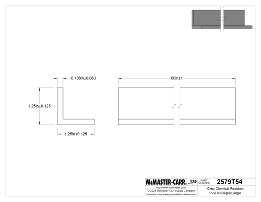When visibility is essential, use these clear 90° angles for tank parts and in chemical-processing applications. PVC resists acids and alkalies.