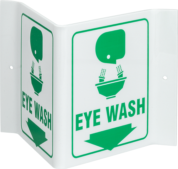 Flange-Mount, Eye Wash and Arrow Message, 6" High, 9" Wide
