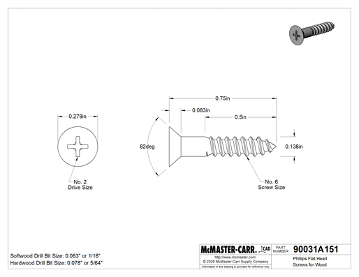 Softwood Drill Bit Size Decimal Equivalent | 0.063" |