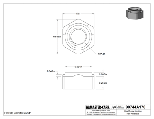 Nut Type | Locknut, Weld, Hex |