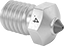 Diamond-tipped nozzles last longer than any other 3D printing nozzle in our offering, even when using the most abrasive filaments. They also transfer heat the best, improving your printing speed, precision, and layer adhesion.