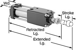 Stroke | Retracted | Extended | Force @ 100 psi, lbs. | Body Material | Pipe Size | Thread Type | Gender | Specifications Met | Each | |