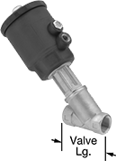 About half the height of our other versa-mount valves, these fit in tight spots. All have a compact, lightweight actuator and an angular body designed for installation in any mounting orientation. They operate on compressed air to automatically start and stop flow. You must control the air supply to the valve using either electricity or compressed air. You must control the air to the actuator using either an electric pilot valve (not included) or a manual on/off valve (not included). Valves don’t require a minimum pressure drop between the inlet and outlet for operation.