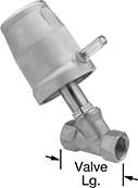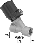 Also known as piston valves, these have a compact, lightweight actuator and an angular body designed for installation in any mounting orientation. They operate on compressed air to automatically start and stop flow. You must control the air to the actuator using either an electric pilot valve (included when listed) or a manual on/off valve (not included).