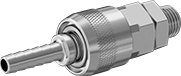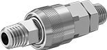 A complete coupling consists of a plug and a socket (both sold separately or in a set) that connect and disconnect quickly. Use them if you need frequent access to a line. All ARO plugs are compatible with any of the ARO sockets of the same coupling size, regardless of the pipe size or barbed hose ID.