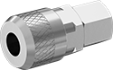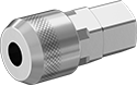 Sockets accommodate five common plug shapes: Industrial, ARO, Lincoln, Tru-Flate, and European. Use them with a plug of the same coupling size to frequently connect and disconnect your line. Sockets are push-to-connect style. To connect, push the plug into the socket until you hear a click. To disconnect, slide the sleeve on the socket forward until the plug ejects. Sockets have a shut-off valve that stops the flow when the coupling is separated, so air won’t leak from the line.