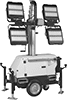 Style B lights have four heads that rotate and pivot individually, so you can aim the light up to 160 ft. in whatever direction you choose. Once you raise the lights, you can rotate the mast to direct light. They’re stable enough to stand firm in 45 mph winds thanks to their sturdy steel frame. A single person can maneuver them, even through doorways. You cannot tow these lights. They have a power outlet at the base to plug in a tool or link up a second light.