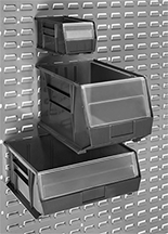 A removable window allows 30% more capacity yet still lets you see what's in the box. A lip on the back allows bin boxes to hang from rails or louvered panels.