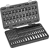 | 80 | 1/4" Hex Bit Sockets (Inch): 1/8", 9/64", 5/32", 3/16", 7/32", 1/4" (1 1/2" O'all Lg.) 1/4" Hex Bit Sockets (Metric): 2.5 mm, 3 mm, 4 mm, 5 mm (1 1/2" O'all Lg.) 1/4” Hex Bit Sockets: T8, T10, T15, T20, T25, T27, T30 (6" O'all Lg.) 3/8" Hex Bit Sockets (Inch): 5/16", 3/8" (1 7/8" O'all Lg.) 3/8" Hex Bit Sockets (Metric): 6 mm, 7 mm, 8 mm, 9 mm, 10 mm (1 7/8" O'all Lg.) 3/8" Hex Bit Sockets (Metric): 4 mm, 5 mm, 6 mm, 7 mm, 8 mm, 9 mm, 10 mm (6" O'all Lg.) 1/2" External Torx Standard Sockets: E18, E20, E22, E24 (1 1/2 O'all Lg.) 1/2" Hex Bit Sockets (Inch): 7/16", 1/2", 9/16", 5/8" (2" O'all Lg.) 1/2" Hex Bit Sockets (Metric): 12 mm, 14 mm, 17 mm (2" O'all Lg.) 1/4" Torx Bit Sockets: T8, T10, T15, T20, T25, T27, T30 (1 1/2" O'all Lg.) 3/8" Torx Bit Sockets: T30, T40, T45, T50, T55 (1 7/8" O'all Lg.) 3/8" Torx Bit Sockets: T40, T45, T50 (6" O'all Lg.) 1/2" Tamper-Resistant Torx Bit Sockets: T60 (2" O'all Lg.) 1/2" Torx Bit Sockets: T60 (2" O'all Lg.) 1/4" External Torx Standard Sockets: E4, E5, E6, E7, E8 (1 1/8" O'all Lg.) 1/4" Tamper-Resistant Torx Bit Sockets: T7, T8, T10, T15, T20, T25, T27, T30 (1 1/2" O'all Lg.) 3/8" External Torx Standard Sockets: E10, E12, E14, E16 (1 1/8" O'all Lg.) 3/8" Tamper-Resistant Torx Bit Sockets: T40, T45, T50, T55 (1 7/8" O'all Lg.) | Chrome-Plated Steel (Bit Sockets), Black-Oxide Steel (Standard Sockets) | Plastic Case | Hex, Tamper-Resistant Torx, Torx, External Torx | 000000000 | 0000000 | |||||||||||||||||||||||||||||||||||||||||||||||||||||||||||||||||||||||||||||||||||||||||||||