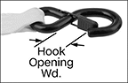 S-hooks mount to a ring or eyelet. Latch hooks stay fastened to a ring or eyelet even if a load shifts or the strap is slack. Wire hooks, also known as J-hooks, have a wide hook end that keeps them stable on rails, lips, rings, and eyelets.