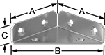 (A) | (B) | (C) | Thick. | Capacity | Fasteners Included | Number of Holes | Hole Style | For Screw Size | Each | |