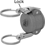 A complete coupling consists of a plug and a socket (both sold separately) that allow you to quickly connect and disconnect medium-to large-diameter hose lines. To connect, insert the plug into the socket and press the levers down. The levers fit snugly into the groove on the plug’s body and force the plug against the gasket to form a tight seal. To disconnect, lift both levers and pull out the plug.