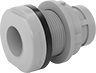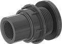 Through-wall fittings are also known as bulkhead couplings and panel-mount couplings; they mount through a wall, tank, or panel to create an inlet or outlet for faucets, pipes, and spigots.