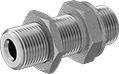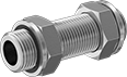 Through-wall fittings are also known as bulkhead couplings; they mount through your wall to create an inlet or outlet. When installing, the gasket should be on the inside of the wall. BSPP and metric male threads have either a gasket or a gasket and washer to prevent leaks.