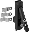 Also known as quarter-turn locks, these locks have a cam that rotates 90° as you swing the handle. They come with multiple cams, so you can change their fixed latching distance. A gasket keeps dust and water from getting into your sealed enclosure through the lock. This helps you maintain the enclosure’s IP66 and NEMA 4 ratings.