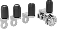 Also known as compression cam locks, these locks create a tighter hold than a traditional cam lock, making them useful for doors that have a seal. Turn the head a quarter turn to lock, then turn it another quarter turn to create compression and minimize rattling from vibration. Since they lock with a hex key, these locks are great if you want to secure an enclosure with a simple keying system.