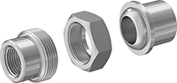 These stainless steel fittings are more corrosion resistant than steel fittings, and almost as strong. 304 stainless steel fittings hold up in humid, damp, and washdown environments but will corrode if exposed to salt water or chemicals. 316 stainless steel fittings are the most corrosion resistant. They stand up to wet environments, just like 304 stainless steel fittings, but unlike 304 stainless steel, they will not corrode from salt water, chlorine solutions, and chemicals.
