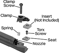 For Insert | Cutting Edge Angle | Replacement Torx Screws | Replacement Torx Keys | Replacement Clamps | Replacement Clamp Screws | Replacement Hex Keys | Replacement Nozzles | Replacement Springs | Replacement Seats | ||||||||||||||||||