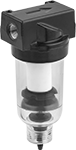 Also known as coalescing filters, these filters remove compressor oil to extend the service life of air-powered tools and equipment. Customize your air preparation solution by connecting these modular units to other Aventics units of the same series. Compact and airtight connections can be made and easily swapped out using clamps. These filters have a drain that empties automatically when the system is depressurized, such as when the air is turned off at night. You can also manually empty the drain. A clear bowl lets you see inside so you can monitor its contents. As the filter clogs, a filter service indicator turns increasingly red, letting you know when the filter elements need to be replaced. To prevent clogs, install a particle filter before the oil filter.