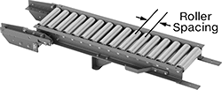 Choose a small roller spacing when conveying small items to prevent them from getting stuck between rollers. For large items, a large roller spacing helps minimize friction between your material and the rollers.