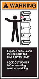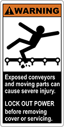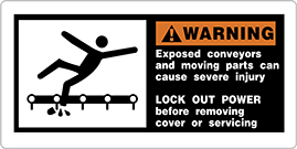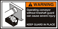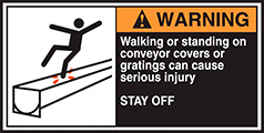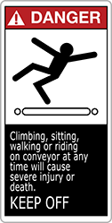 Remind people working near conveyors about hazards and unsafe practices that can cause injuries. These labels meet CEMA Brochure No. 201 standards. They also have colors and headers that meet OSHA/ANSI standards for indicating hazards.