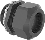 These cord grips are lightweight yet durable. They have a zinc-plated steel locknut and metal-reinforced rubber O-ring that prevents liquid from entering the connection. All are rated NEMA 4X, NEMA 13, and IP66 to provide indoor and outdoor protection against dust, corrosion, water projected from a hose, and oil/coolant spray.