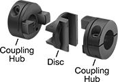 Designed to grip evenly around your shaft, these couplings provide more holding power than set screw couplings without marring the shaft. Tighten the clamping screws to secure. Also known as Oldham couplings, they have a slotted disc that allows hubs to slide independently—good for applications with parallel shaft misalignment. They also allow zero backlash (no play) and never need lubrication.