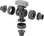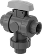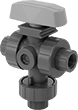 For easy installation and removal from pipelines, all ends on these valves have union fittings that disassemble into multiple pieces. Their fluoroelastomer seal and plastic body can withstand aggressive and corrosive solutions for diverting flow between ports in chemical-processing applications. In addition to threaded NPT female connections, these valves come with socket-connect (unthreaded) female fittings. All have a T-handle that resists accidental movement when snagged or bumped. They are full port, so they do not restrict flow.