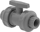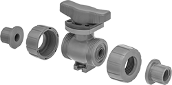 For fast installation and removal from pipelines, these valves have union fittings that disassemble into multiple pieces. All have a plastic body that can stand up to aggressive and corrosive solutions in chemical-processing applications.